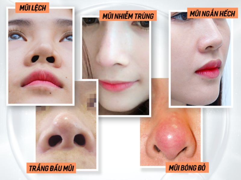 - Co rút đầu mũi, mũi biến dạng: do sụn tự thân tiêu đi hoặc mô sẹo co kéo.